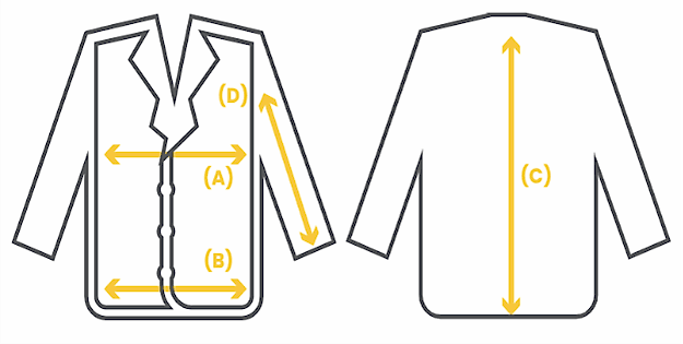 (A) Göğüs Ölçüsü: Mezurayı koltuk altlarından geçirerek göğsün en geniş noktasını ölçün. Ceket bedeninizi belirleyen temel ölçüdür.